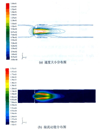 图6流体(水)速度分布云图 图7流体(水)湍流动能分布云图