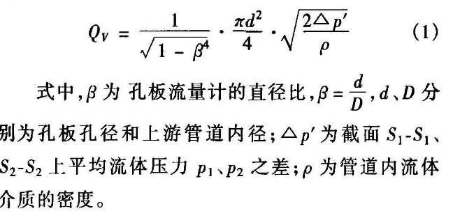 实际上,对于不可压缩流体,下游取压口并非设置在截面S2-S2处,而是在与S2-S2有一定距离的截面S3-S3处。考虑到在截面S1-S1、S3-S3上测取的平均流体压力差△p一定大于△p′,故定义流出系数C来修正上述公式,可得实际体积流量值的计算公式