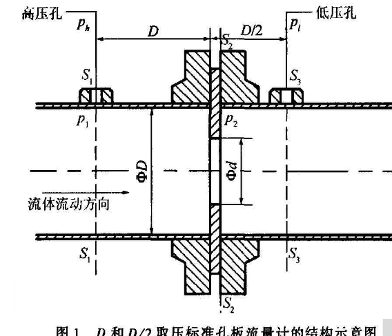 图2孔板流量计流场特性示意图3标准孔板流量计的D和D/2取压结构示意